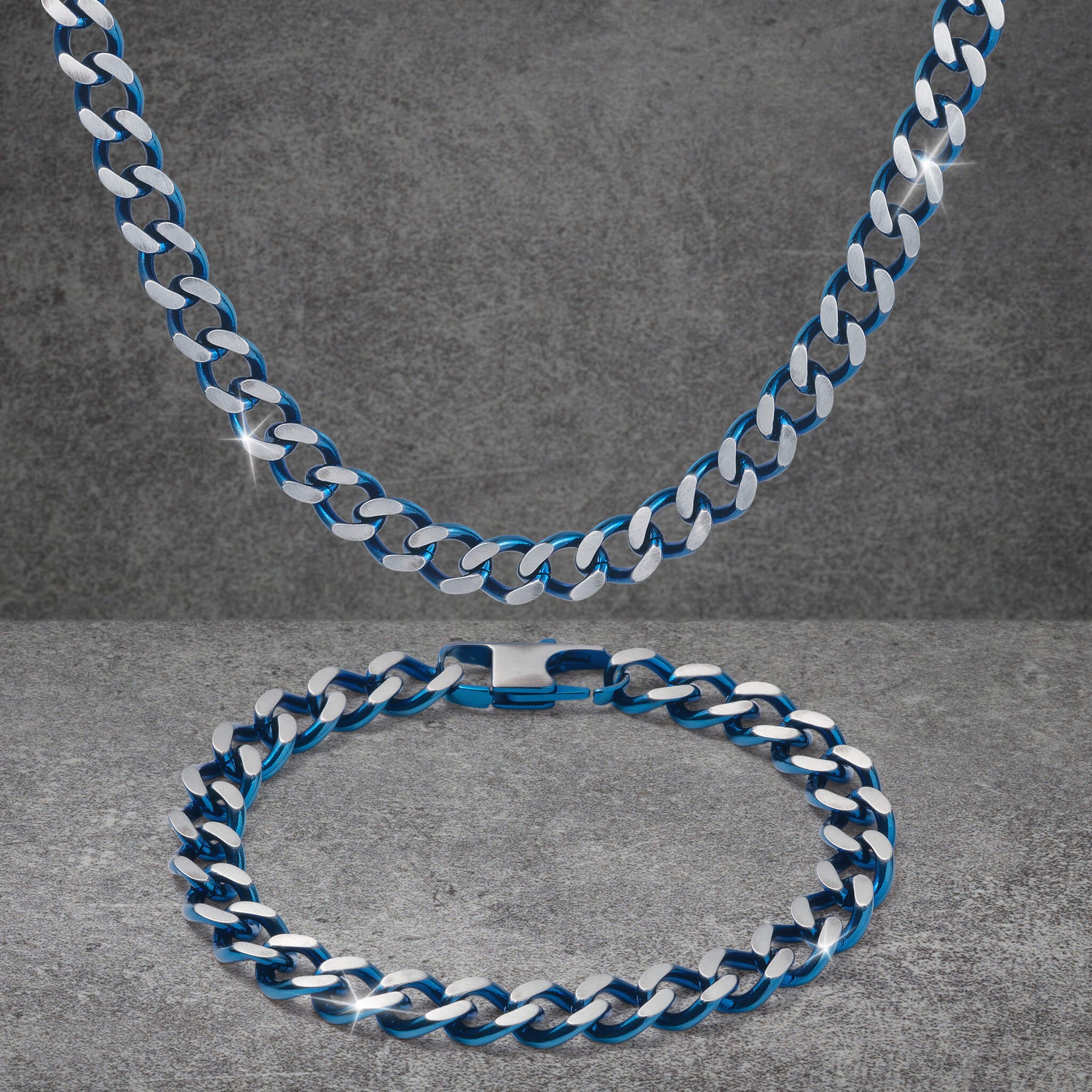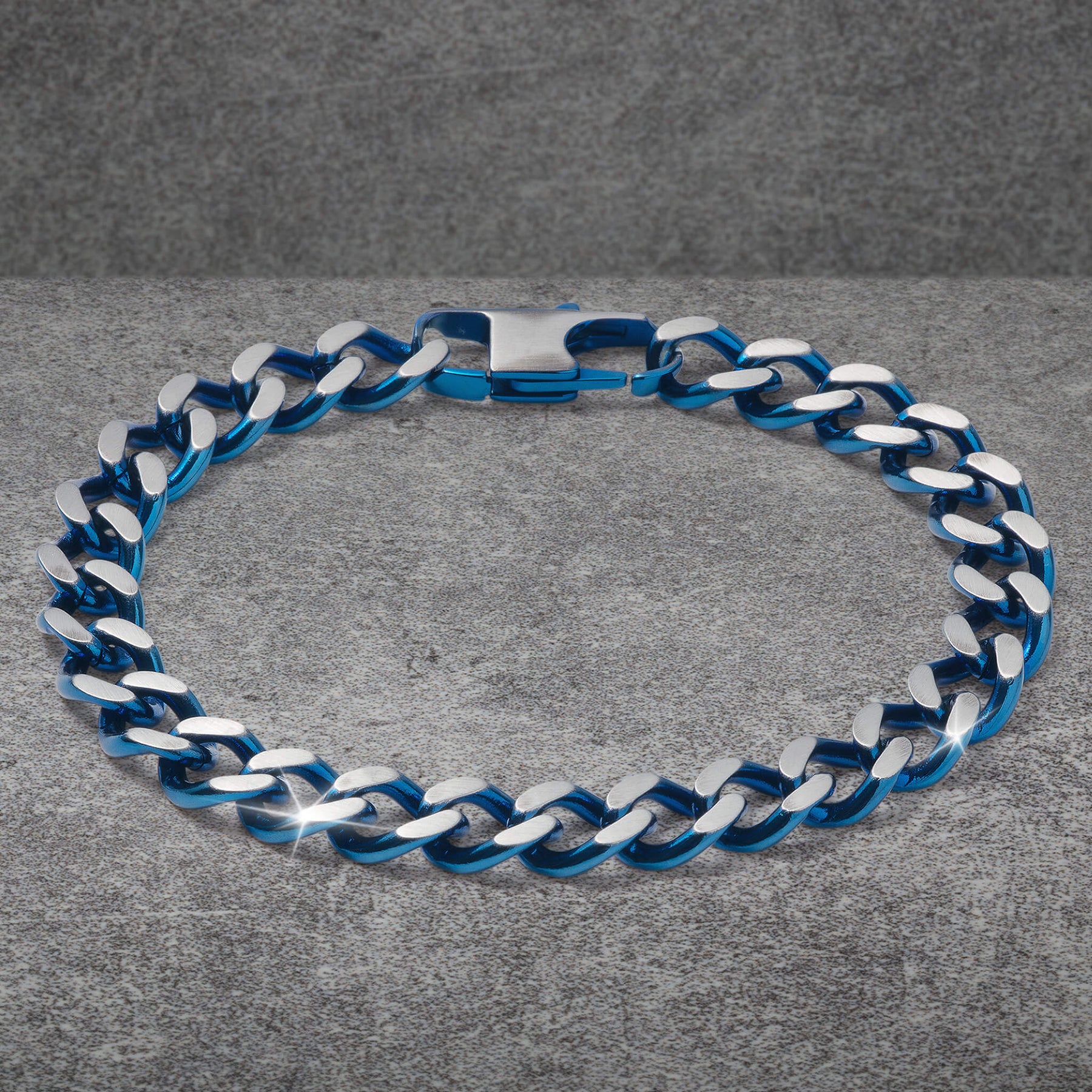 Constructed from premium stainless steel with an innovative IP blue plating, this collection embodies a bold, masculine aesthetic while maintaining an air of refinement. The durable stainlesssteel links are beautifully contrasted by the vibrant blue tones that evoke a sense of power and confidence. A perfect balance of classic and contemporary, the blue plating symbolizes strength, focus and calmness which are qualities that resonate with the modern man’s journey. This collection is ideal for those who embrace their individuality, combining a sharp, clean look with a touch of daring elegance. Whether worn together or separately, these pieces elevate any ensemble with their cool, confident allure.