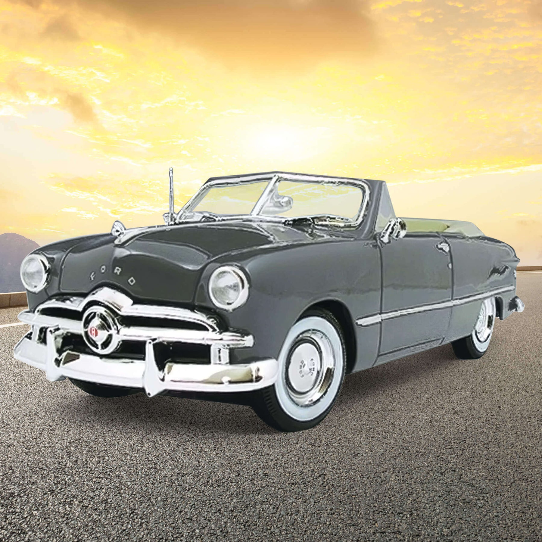 Step back into the golden age of American motoring with this stunning 1:18 scale 1949 Ford Convertible die-cast replica, a true symbol of postwar optimism and style. With its flowing lines, broad chrome grille, and classic open-air design, this Ford captures the spirit of late-1940s cruising like few cars can.